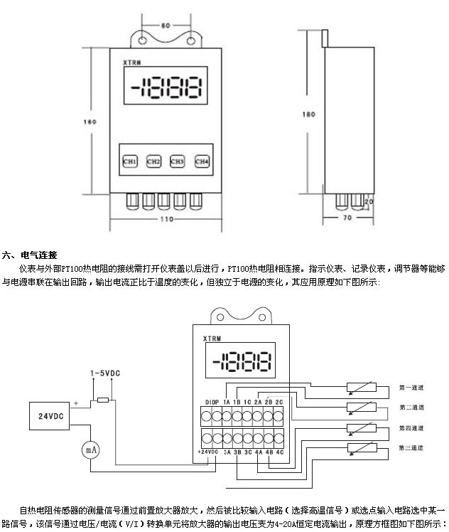4.在正常工作情況下,儀表同時(shí)對(duì)四路溫度進(jìn)行測(cè)量,但僅顯示和輸出溫度***高的一路信號(hào)。