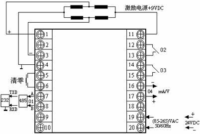 DY2000智能橋路輸入顯示控制儀表接線圖
