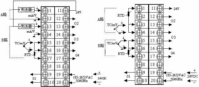 A路:標(biāo)準(zhǔn)信號輸入 A路:熱電偶或熱電阻輸入