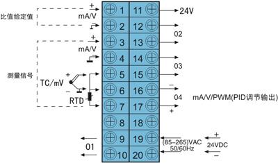 比值給定PID調(diào)節(jié)數(shù)字/光柱顯示儀表接線圖