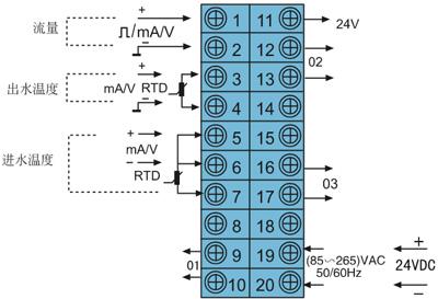 三、DY2000熱水熱量積算數字顯示儀表接線圖