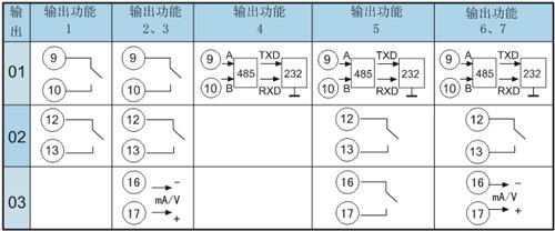 通訊/打印(O1)+報警(O2)+(1~5)V變送輸出(O3)