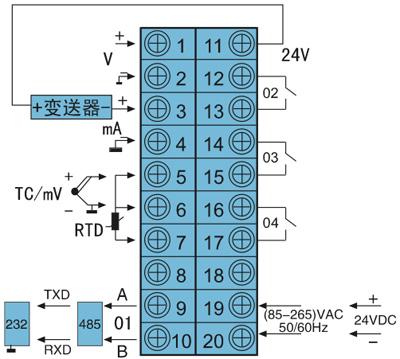 * 報(bào)警(O2),報(bào)警(O3)用戶可自行組態(tài)為上限報(bào)警或下限報(bào)警。