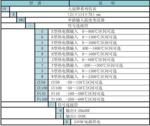 DYRBWZ熱電偶/熱電阻溫度變送器是一種模塊化的卡裝式儀表,它將來自熱電偶的電熱勢/熱電阻的阻值變化轉換為與溫度成線性關系的4~20mADC或1~5VDC隔離信號輸出。