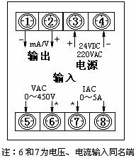 1. 當(dāng)測量有功功率或功率因數(shù)時(shí),要注意6和7端子為電壓信號和電流信號的同名端,如出現(xiàn)對純阻性負(fù)載時(shí)功率或功率因數(shù)顯示為負(fù)值,應(yīng)將電壓信號2個(gè)接入端或電流信號2個(gè)接入端對調(diào)。