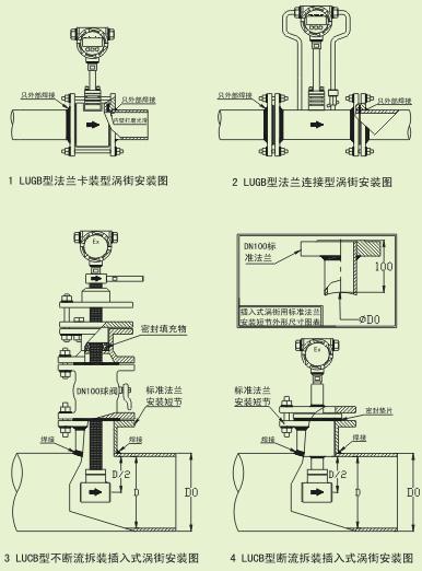 DYLUG型、DYLUC型渦街安裝方式圖                 圖四