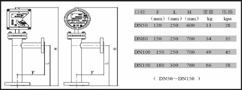 DYFT4螺紋下進(jìn)上出型外形尺寸及重量