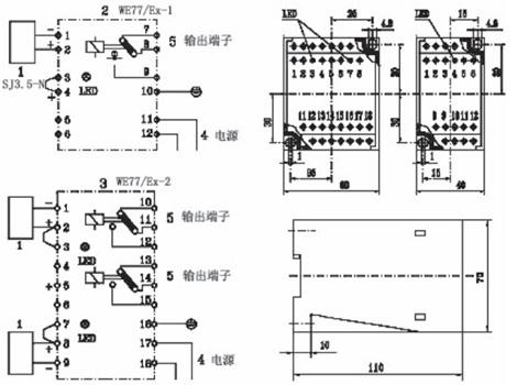 WE77 晶體管繼電器WE77/Ex-1 和WE77/Ex-2 包括一個(gè)電源組、晶體管整流放大器和中間繼電器輸出。根據(jù)操作
