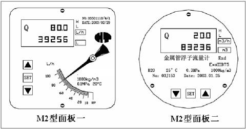 M2 型指示器的上述功能由安裝在外殼內(nèi)的磁傳感器、MCU 微處理器及相應(yīng)的功能電路所構(gòu)成的HTD 磁測(cè)變送器完成,該變送器有一個(gè)雙行八位LCD 液晶顯示屏,只須三鍵:INC---加鍵,用于參數(shù)的修改和選擇;SET---功能鍵,用于主菜單的循環(huán)顯示和參數(shù)設(shè)定值的確認(rèn);DEC---減鍵,用于參數(shù)的修改和子菜單的進(jìn)入,即可完******機(jī)對(duì)話。在儀表口徑所允許的測(cè)量范圍內(nèi),用戶可現(xiàn)場(chǎng)根據(jù)工藝參數(shù)的變化,進(jìn)行現(xiàn)場(chǎng)標(biāo)定。M2 型指示器面板圖如下,隨版本更新面板將有所不同,屆時(shí)產(chǎn)品面板以實(shí)物為準(zhǔn)。