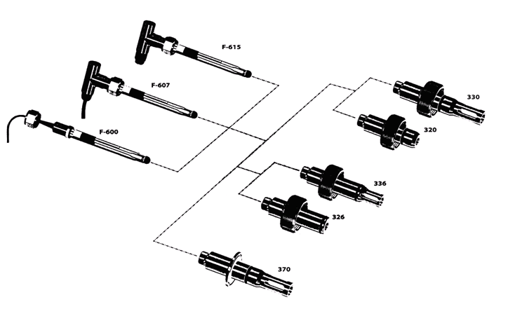F615要另外選配電纜,F(xiàn)607和F600自帶2米電纜和BNC接頭。特殊長(zhǎng)度和接頭請(qǐng)?jiān)谟嗀洉r(shí)指明。