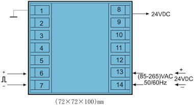 2.   (72×72×100)mm外形的儀表輸入/輸出接線圖