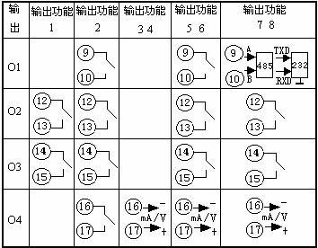 通訊(O1)+報警(O2)+報警(O3)+(1~5)V變送輸出(O4)