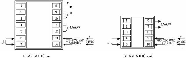 3.  (72×72×100)mm、(48×48×100)mm外形的儀表輸入/輸出接線圖