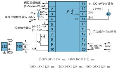 注:1.本儀表所帶的饋電通常為24VDC。當閥位信號為電位器時儀表帶5VDC饋電輸出。