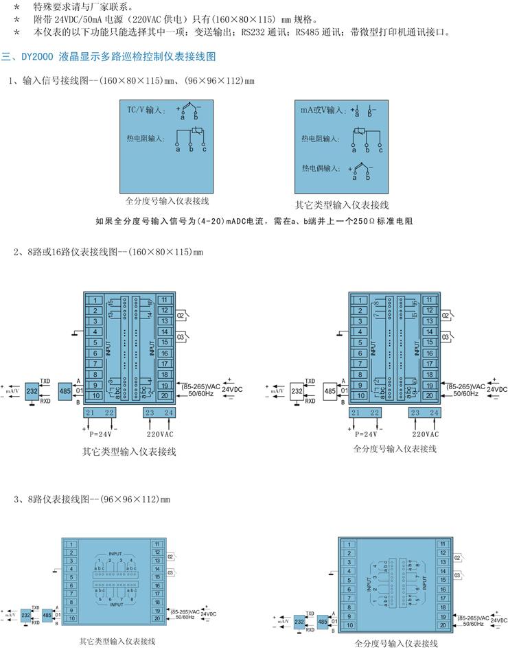 • 產(chǎn)品名稱:DY2000(DL)液晶顯示多路巡檢控制儀表