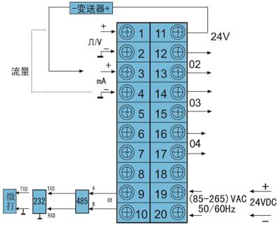 二、DY2000液晶顯示流量批量控制數(shù)字顯示儀表接線圖