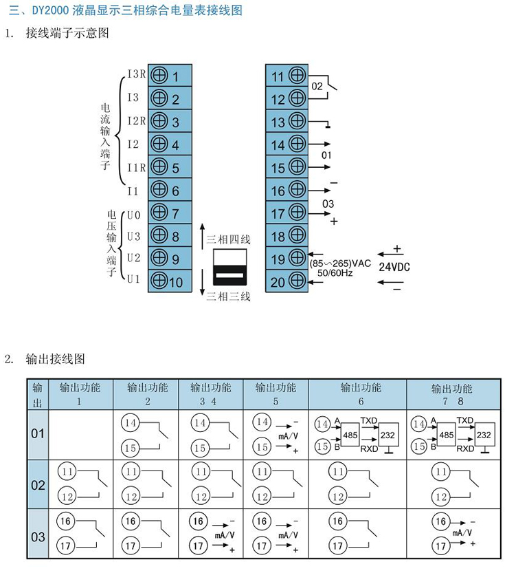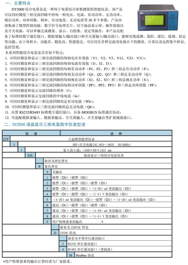• 產品名稱:DY2000(SZL)液晶顯示三相綜合電量儀表
