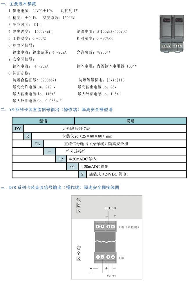 • 產(chǎn)品名稱:DYR(FA)系列卡裝直流信號輸出(操作端)隔離安全柵