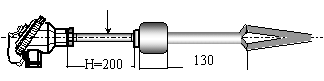 | 注:(1)外露長(zhǎng)度H,用戶可根據(jù)保溫層厚度的不同,在H=200、240、280、320、380、 420、480、520系列中選訂。 (2)產(chǎn)品規(guī)格的表示:插深+H=總長(zhǎng); |