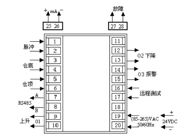 9. 報(bào)警輸出: 故障報(bào)警、料位報(bào)警繼電器輸出 (5A/24VDC 或 5A/240VAC)